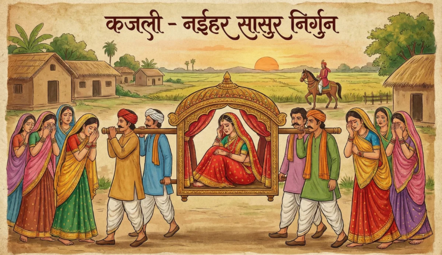 अबही खेलत रहलीव नइहरे के देश सखिन के अपने साथ लिए”